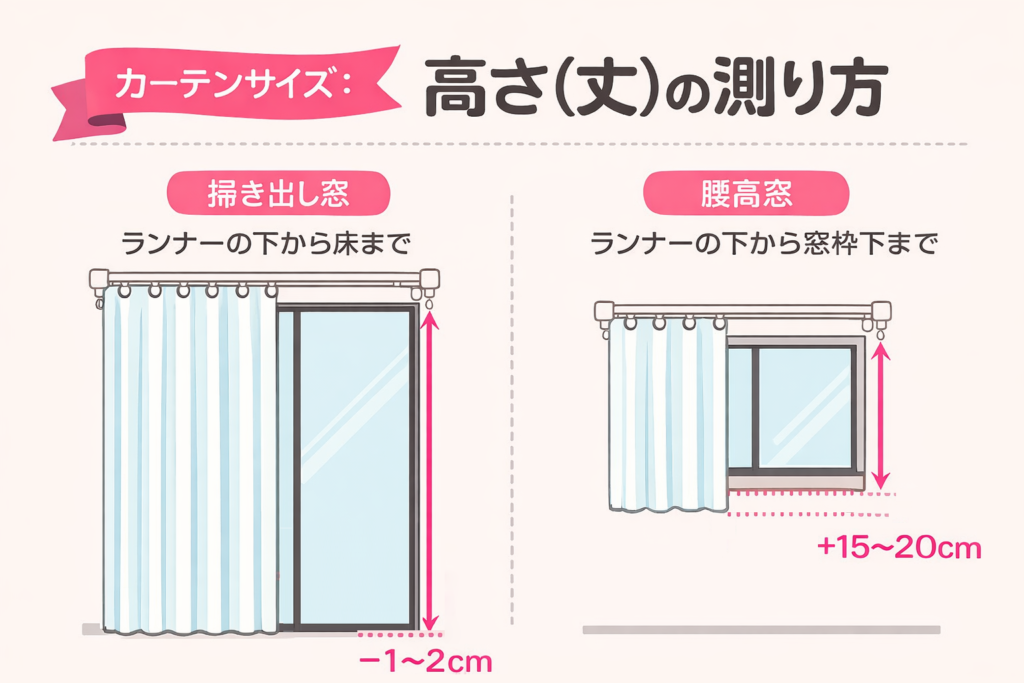 カーテンサイズの測り方と買い方|長さ・幅の決め方を図解
