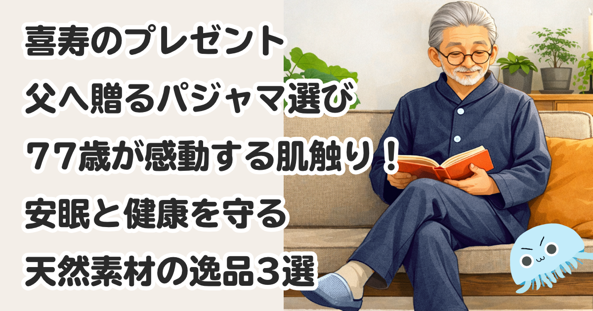 実は今、喜寿のプレゼントとして「パジャマ」を選ぶ人が増えています。特に、自分ではなかなか買わないような上質な天然素材のものは、毎晩使ってもらえる実用性と特別感を兼ね備えた贈り物として人気なんです。